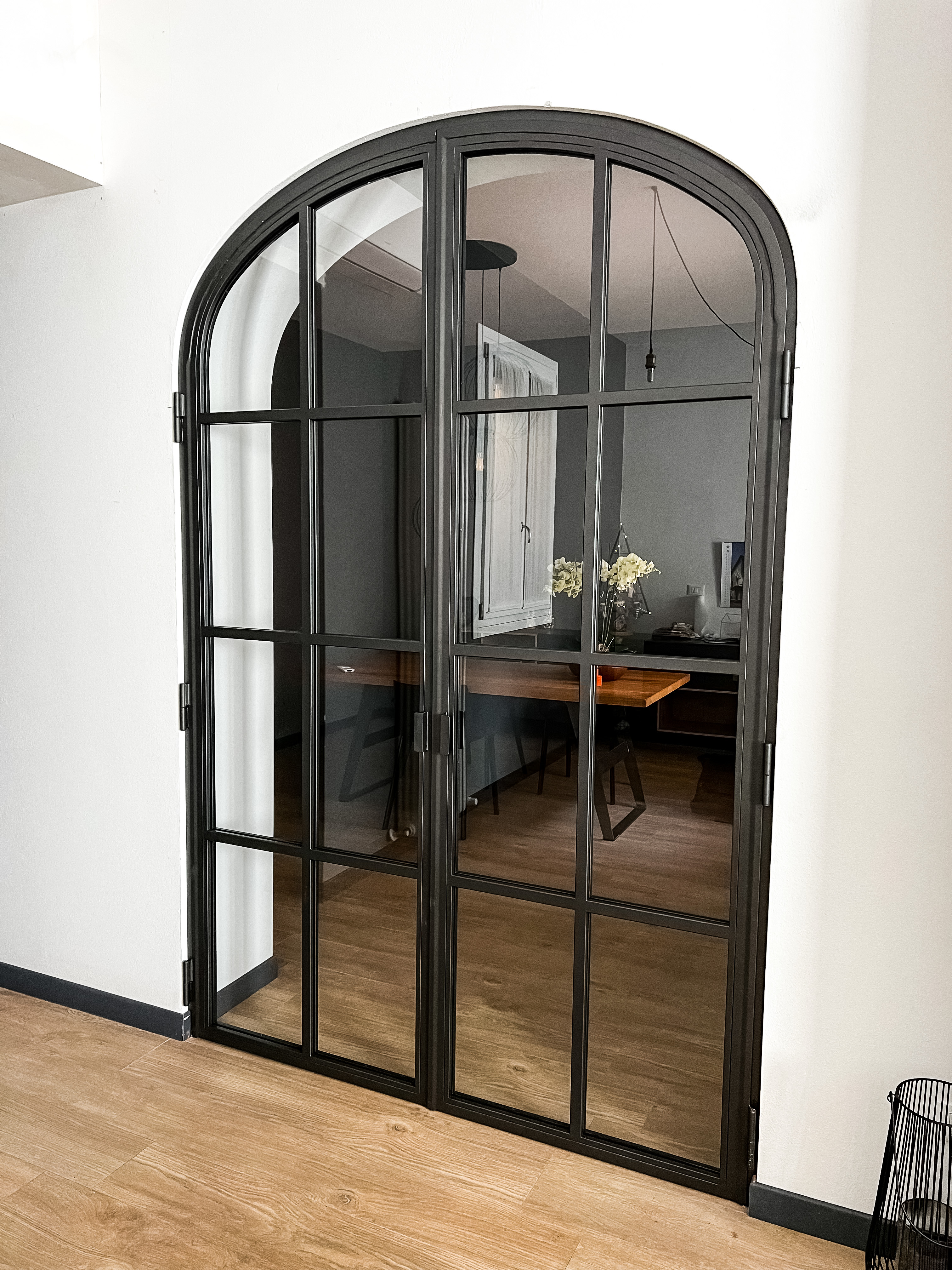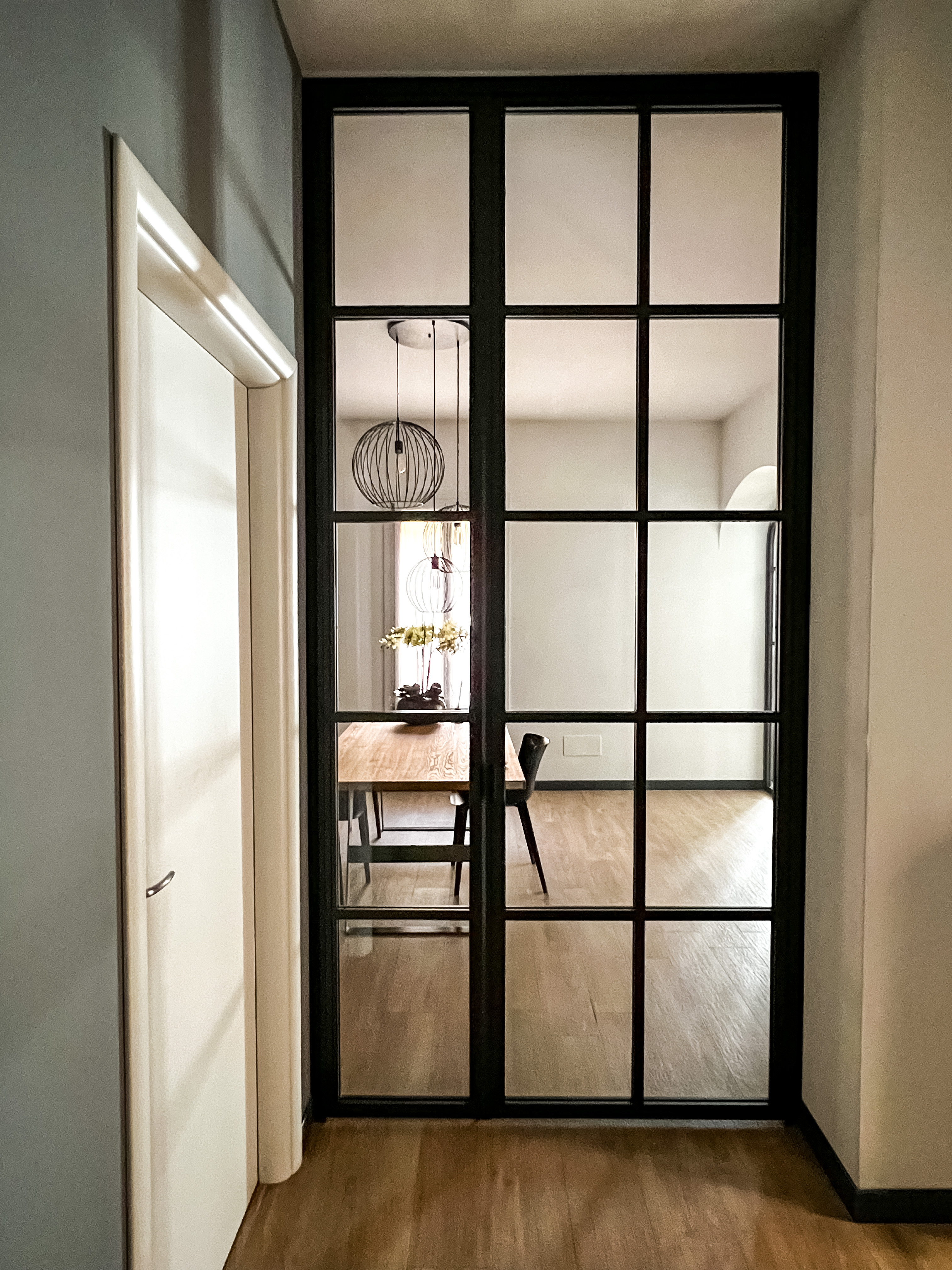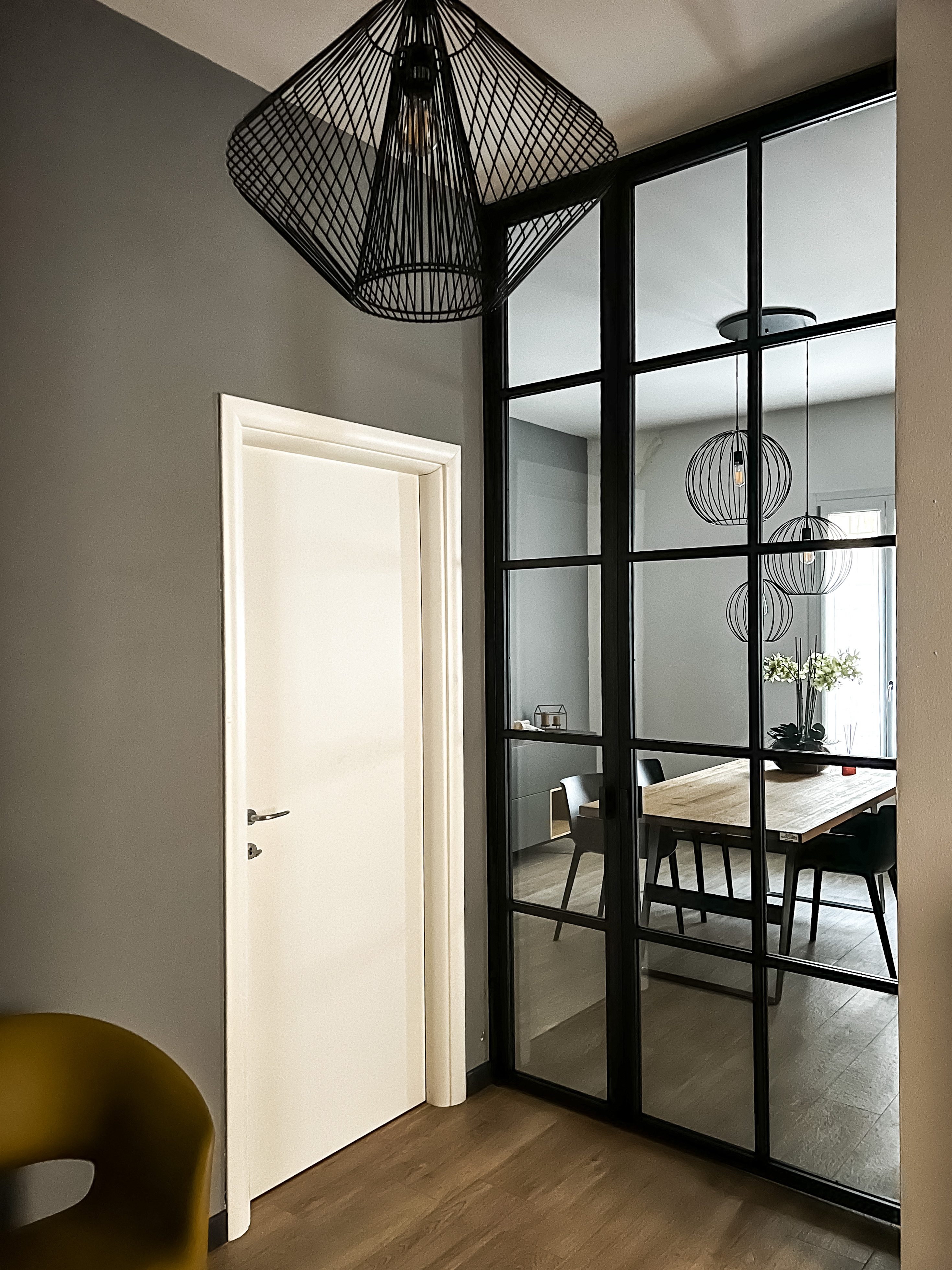 Un progetto di design che crea un’atmosfera accogliente e conviviale attraverso l’uso di vetrate che richiamano lo stile delle serre ottocentesche. Le pareti sono decorate con carte da parati che raffigurano un verde rigoglioso, contribuendo a evocare un’immagine di natura in foglie all’interno dello spazio.